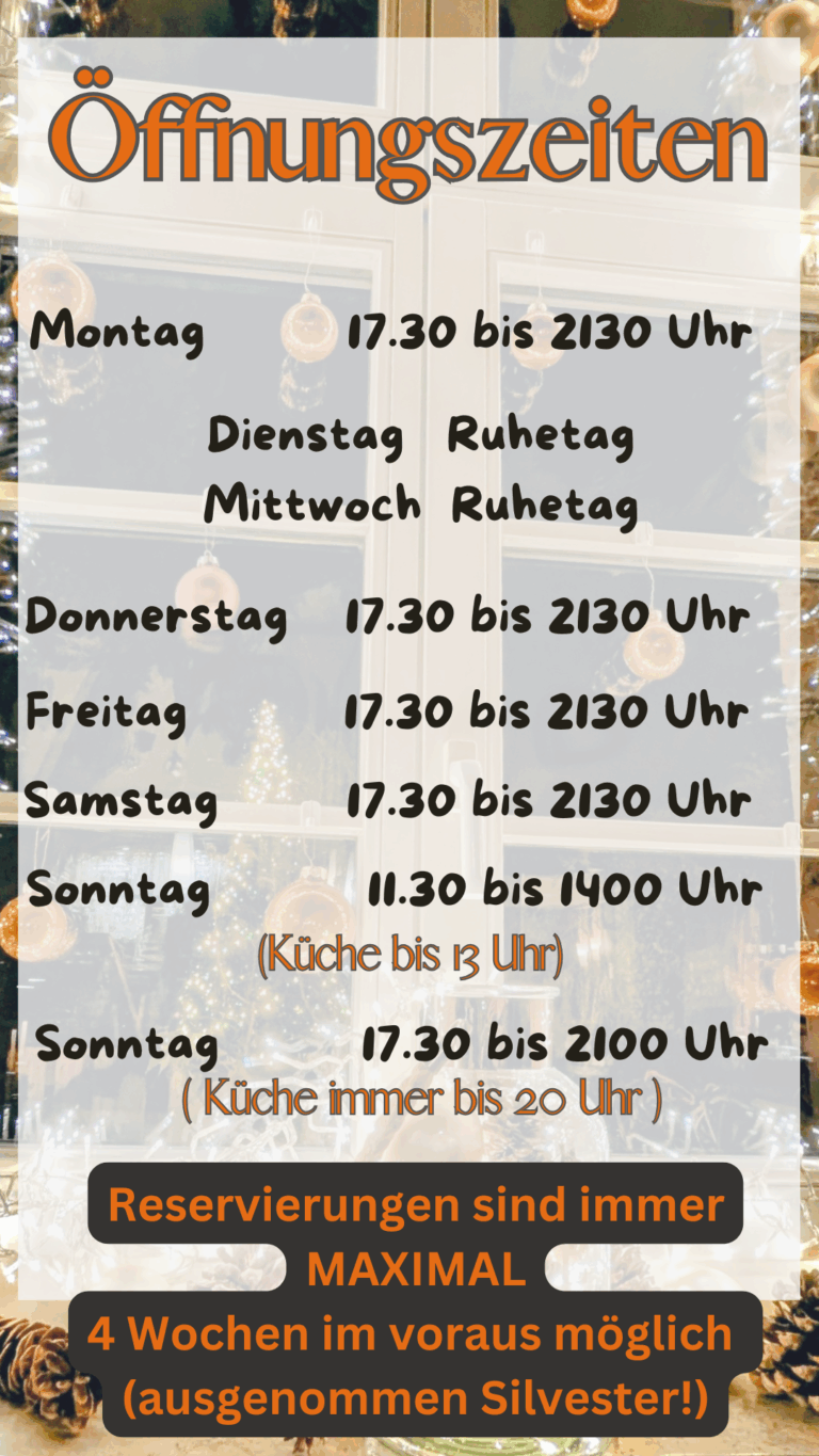 - Reservierung gerne persönlich!